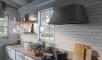 A modern take on country chic style with a minimalist range hood