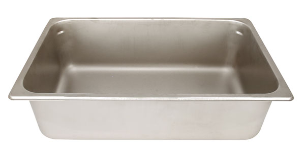 6″ deep stainless ice pan slides on sink rails. ICE PAN