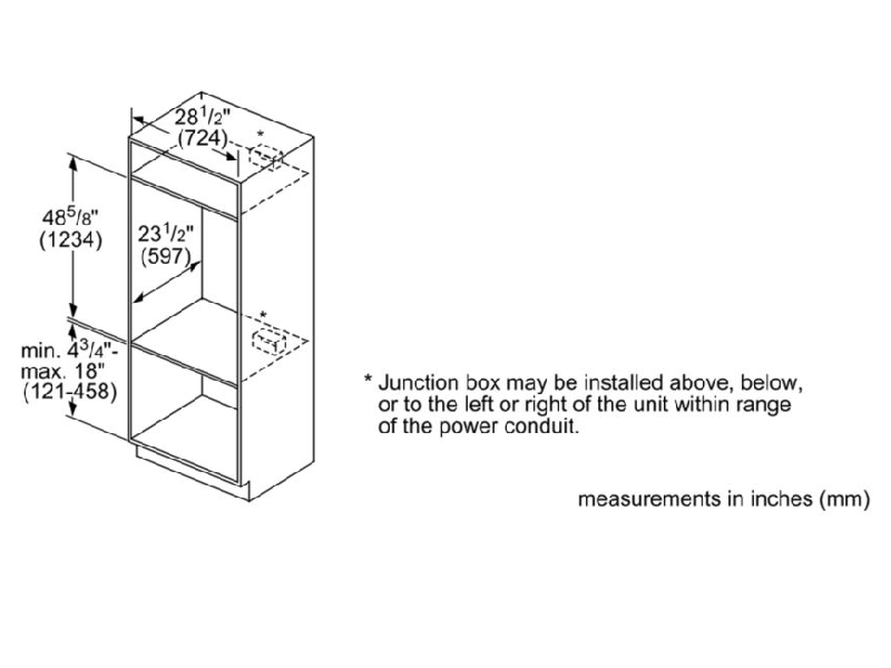 | Required cutout size (HxWxD) (in) | 48 5/8'' x 28 1/2'' x 23 1/2'' |