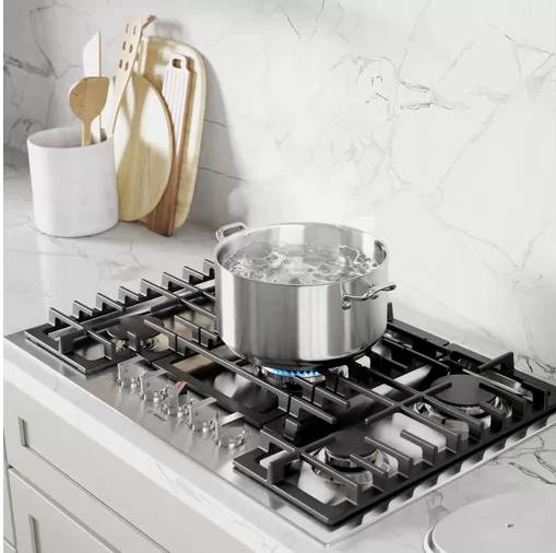 When adjusting the flame, it can be hard to determine the exact heat level you are on. Our new gas cooktops with FlameSelect eliminates the guesswork. Equipped with nine precisely adjustable power levels, for reliable, repeatable flame regulation and perfect cooking results. Level 1 is perfect for low and gentle simmering perfect for melting chocolate and delicate sauces, and level 9 yields a rolling boil. With this precision, checking the flame height is a thing of the past.
