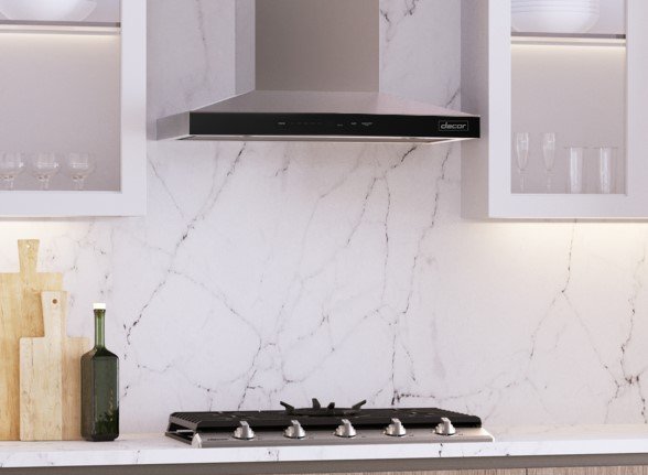 The 30" Chimney Wall Hood is designed to make your life easier by seamlessly pairing to your compatible Dacor cooking product. Bluetooth automatically starts ventilation when you start cooking and adjusts intensity when necessary to ensure smoke and odor are removed from the air with minimal noise. SmartThings connectivity allows you to control your ventilation from your mobile device. Powerful yet quiet, internal blowers draw air into the ventilation system to dissipate cooking odors, even when all burners are lit. Designed with elegant lines, sophisticated glass touch control, and LED strip lighting that will illuminate your cooking area in an elegant glow.