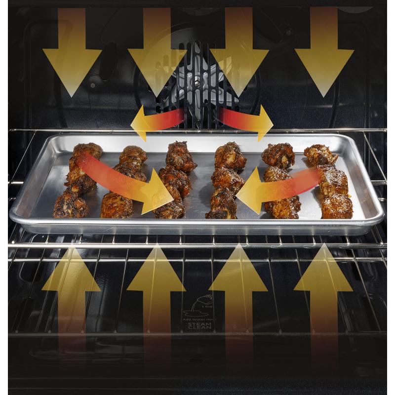 30" GE 5.0 Cu. Ft. Freestanding Electric Convection Range with No-Preheat Air Fry in Stainless Steel- JCB840STSS