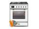The UM30DNE3RALCLP 30" Majestic freestanding range brings the ultimate cooking experience to your kitchen. The large European Convection oven gives you the power to experiment with your dishes and get even cooking, while the full-width dishwarming drawer gives the option to use residual heat of the oven to keep cooked food warm or warm your dishes before serving.The cooktop features semi-sealed burners with various BTUs to cook whatever you want, however you want.