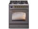 30" ILVE Nostalgie II Dual Fuel Natural Gas Freestanding Range in Matte Graphite with Brass Trim - UP30NMP/MGG NG