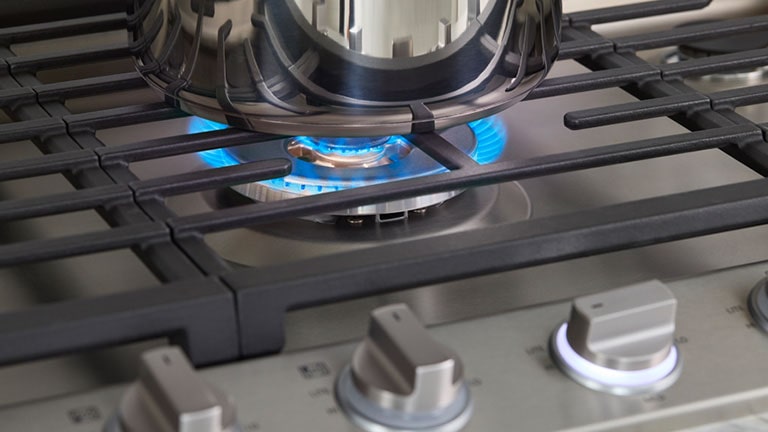 The cooktop burners sync with your LG smart hood or over-the-range microwave via the ThinQ app to auto-activate the fans and lights for a seamless cooking experience.