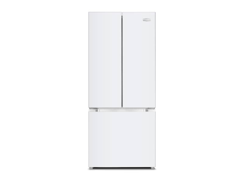 This premium Marathon 18 cu.ft. French door bottom mount refrigerator offers convenient functionality, style and energy efficiency. Featuring a high performing and quiet Inverter compressor, this EnergyStar certified fridge has multi-air-flow frost free operation for even cooling and retaining optimal freshness. A spacious pull-out freezer drawer, a bright LED light, 3 easy to clean tempered glass shelves with an optional 3-bottle hanging wine rack, twin humidity-controlled crispers and ample door storage… this fridge has it all! All Marathon Appliances are "Engineered to Perform" and are backed by the Industry's Best 2 Year Parts and Labour Warranty.