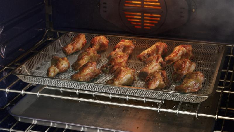 An easy-fill water tray lets you bake, broil, and roast with added steam, resulting in foods that are moist and flavorful.
