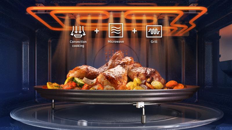 Prepare delicious meals in less time. Power convection system combines 3 heat sources: Convection, Microwave and Grill. Convection cooking ensures food is cooked evenly and is crispy outside, but juicy inside. Microwave technology quickly and thoroughly cooks from the inside out. And a grill crisps and browns your food.