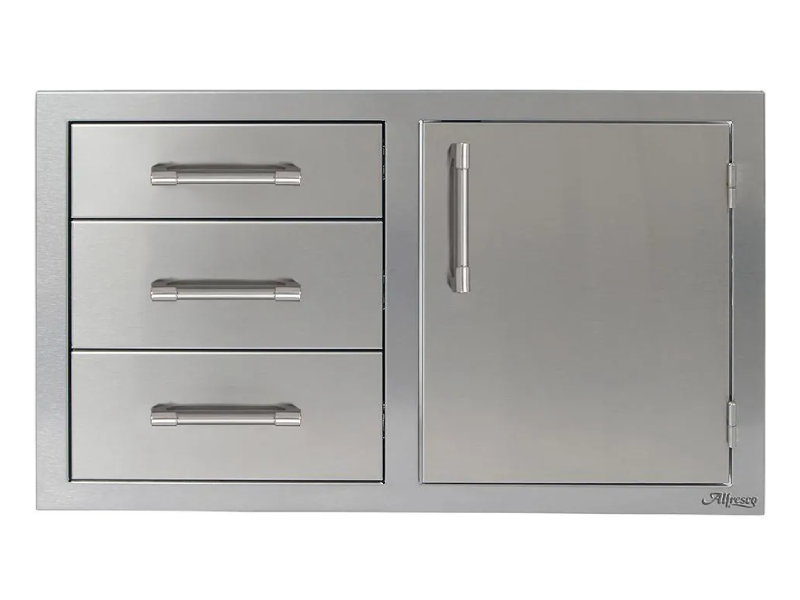 32" Alfresco Stainless Steel Right-Hinged Soft-Close Door & Triple Drawer Combo - AXE-DDC-R-SC