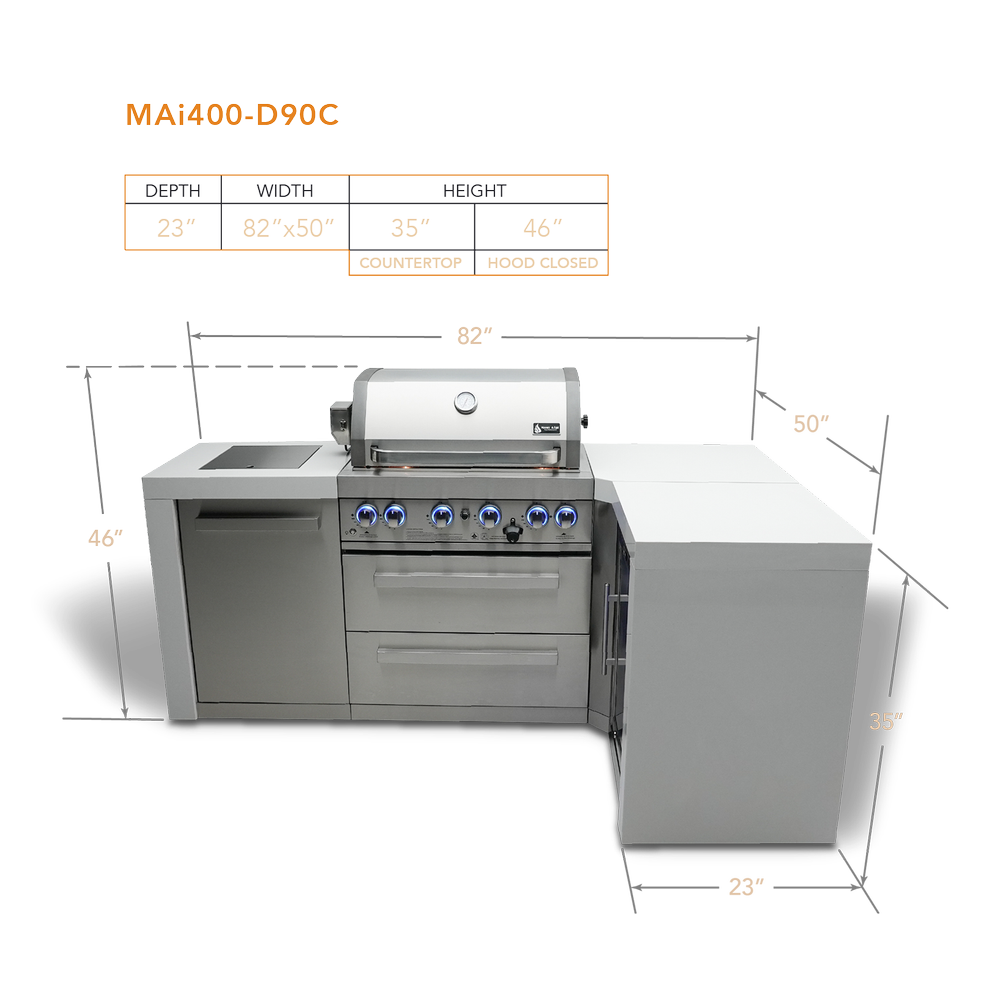 32" Mont Alpi 4 Burner Deluxe Island With 90 Degree Corner - MAi400-D90