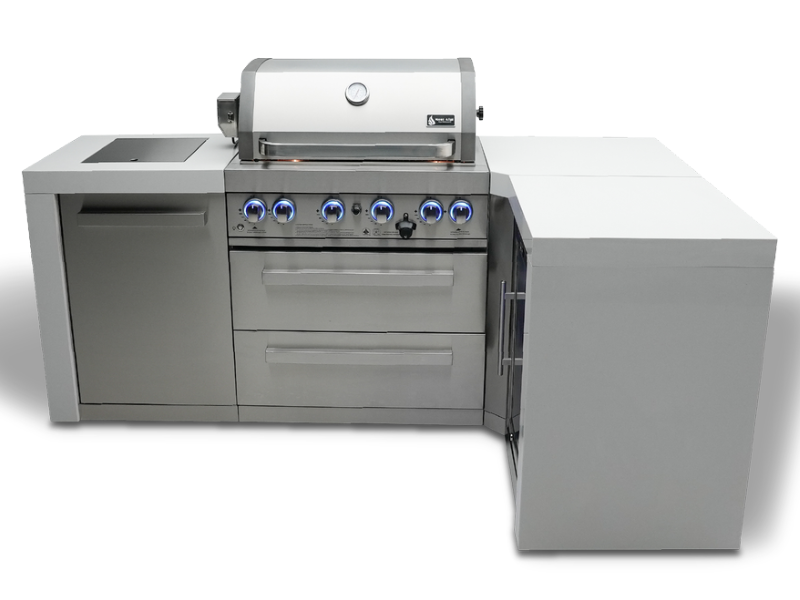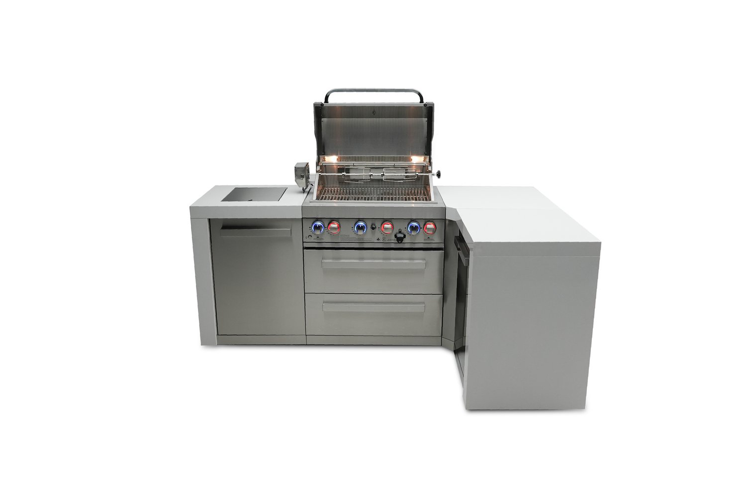 Introducing the Mont Alpi 4-burner Deluxe Island with a 90-Degree Corner - the ultimate deluxe grill for your outdoor space! The MAi400-D90 boasts four burners, along with an infrared side burner for searing, pan frying and boiling, and an infrared rear burner for the ultimate rotisserie experience. The 90-degree corner module provides a perfect fit for right angles and tighter spaces, giving you extra prep space.