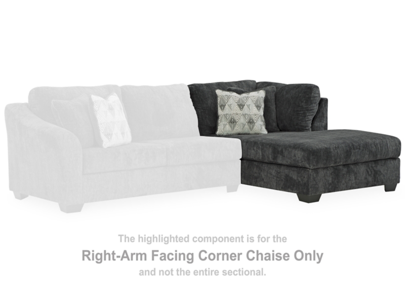 This right-arm facing corner chaise is made with polyester upholstery. Pairs with other items in the series to make a sectional, sold separately.