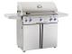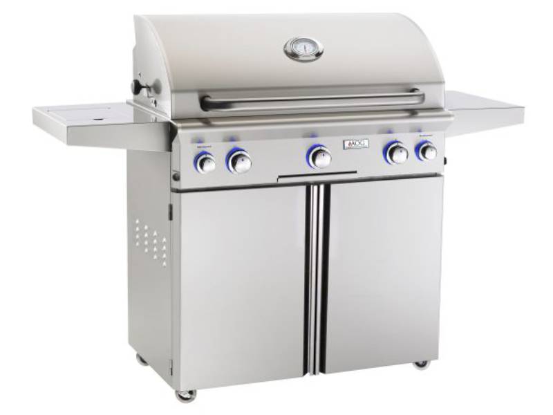 The new “L” series grills feature an electronic push button ignition system that does not require batteries. It also includes interior halogen lights (controlled by a push button located on the right side of the unit) ideal for evening grilling. Requires 120 Volt AC power.