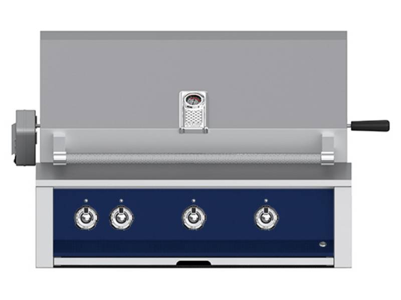 The Aspire by Hestan built-in grill with rotisserie adds even more culinary versatility to Aspire’s heavy-duty performance. This grill features an additional infrared rotisserie burner and porcelain broiling pan with stainless steel rotisserie spit and forks. More incomparable features include spring-assisted hood, variable infrared searing burner, dual halogen lighting and flip-to-clean ceramic briquettes.