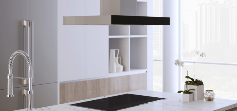 The Chimney Wall Hood is designed with elegant lines, LED lighting, and a sophisticated glass touch control that seamlessly connects and pairs with your compatible Dacor cooking product.