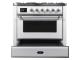 The 36" Majestic freestanding range brings the ultimate cooking experience to your kitchen. The large European Convection oven gives you the power to experiment with your dishes and get even cooking, while the full-width dishwarming drawer gives the option to use residual heat of the oven to keep cooked food warm or warm your dishes before serving.The cooktop features semi-sealed burners with various BTUs to cook whatever you want, however you want.