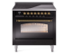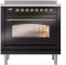 36" ILVE Nostalgie II Electric Freestanding Range in Glossy Black with Brass Trim - UPI366NMP/BKG