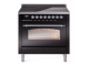36" ILVE Nostalgie II Electric Freestanding Range in Glossy Black with Chrome Trim - UPI366NMP/BKC
