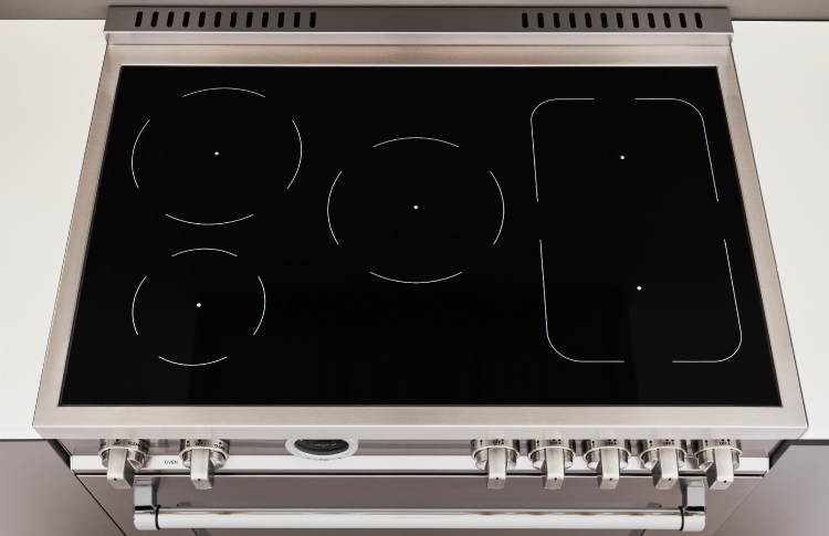 This all-new induction range has 5 high-power heating zones with maximum power output of 3700W. The right-side heating zones can be bridged to create a larger cooking area. Each induction area is controlled with knobs and has a convenient read-out interface on the glass worktop.