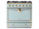 Designed especially for the US market, the single oven "Albertine" range is the baby to the CornuFé family. With one large multi-function convection oven, and seven unique cooking modes, the range has five powerful brass gas burners and one large storage drawer. The CornuFé 90 is available in 8 classic colors and 4 Suzanne Kasler Couleurs. All Colors are available in 3 trim package options, including Stainless Steel and Polished Brass, Stainless Steel and Satin Chrome and Stainless Steel and Polished Chrome.
