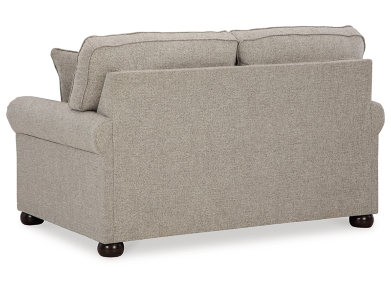 Inspired by the past but rooted firmly in the present, this loveseat complements your transitional seating area. Its versatile upholstery is delightfully detailed for a subtle herringbone effect. Designer touches like decorative nailhead trim and bun legs add traditional character. With this loveseat's reliable style and comfort, all you need to do is sit back and relax.