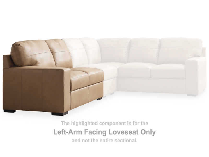 This left-arm facing loveseat is made with a combination of 100% top grain leather and faux leather upholstery. Pairs with other items in the series to make a sectional.