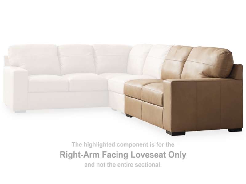 This right-arm facing loveseat is made with a combination of 100% top grain leather and faux leather upholstery. Pairs with other items in the series to make a sectional.