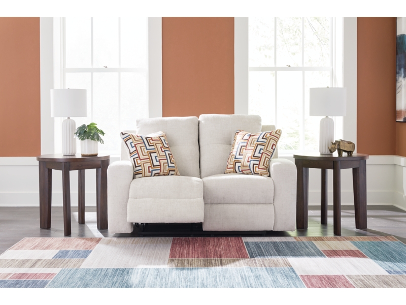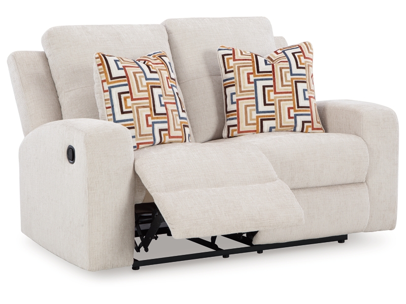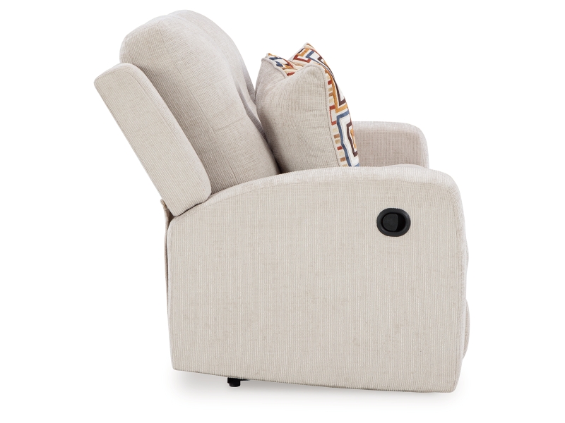 This reclining loveseat invites you to a luxuriously soft lounging experience. The chic hue fits right in with contemporary color palettes. A tufted back keeps the look right on trend. Balancing style and function, its pull tab reclining effortlessly takes you to relaxation mode.