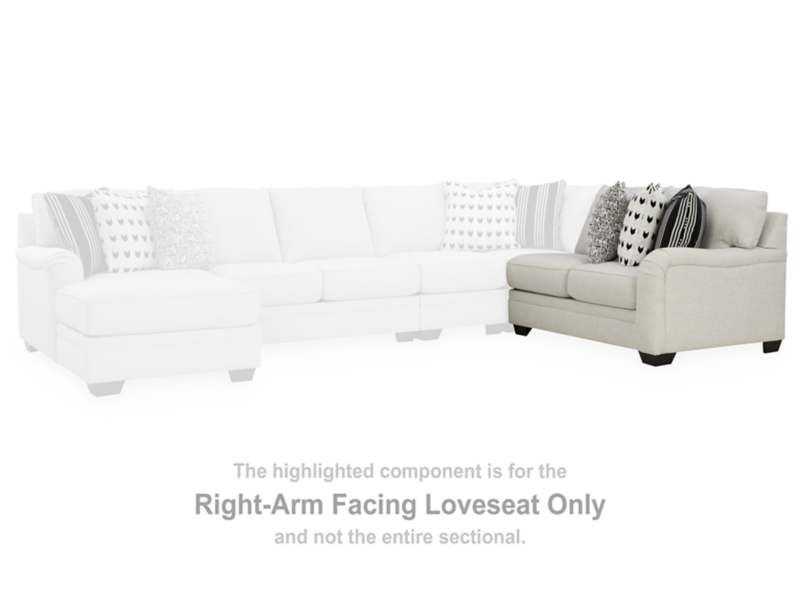 This right-arm facing loveseat is made with polyester/linen/viscose upholstery. Pairs with other items in the series to make a sectional.