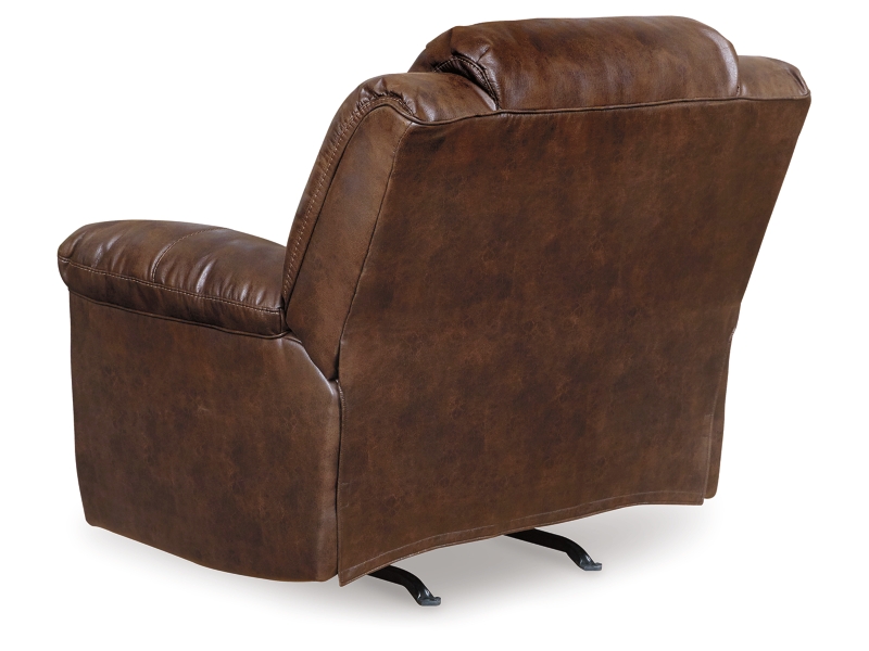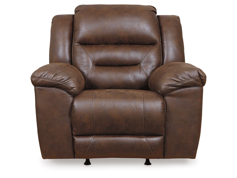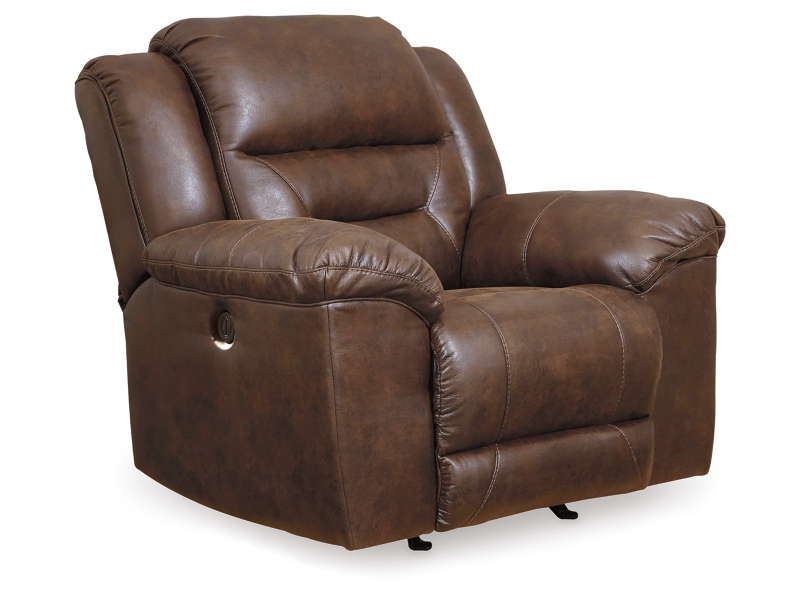 For those who love the cool look of leather but long for the warm feel of fabric, this power rocker recliner delivers both with ease. Its high-performance padded faux leather is remarkably durable and easy to clean, making it just the thing for family spaces. When it’s time to relax, the one-touch power control puts the perfect position at your fingertips. Channel-stitched back cushions provide indulgent lumbar support for maximum seating comfort—not to mention fashion-forward flair.