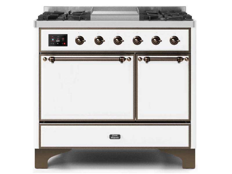 40" ILVE 3.82 Cu. Ft. Majestic II Dual Fuel Liquid Propane Range in White with Bronze Trim - UMD10FDQNS3/WHB LP