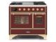 40" ILVE Majestic II Dual Fuel Range with Brass Trim in Burgundy - UMD10FDNS3BUG-NG