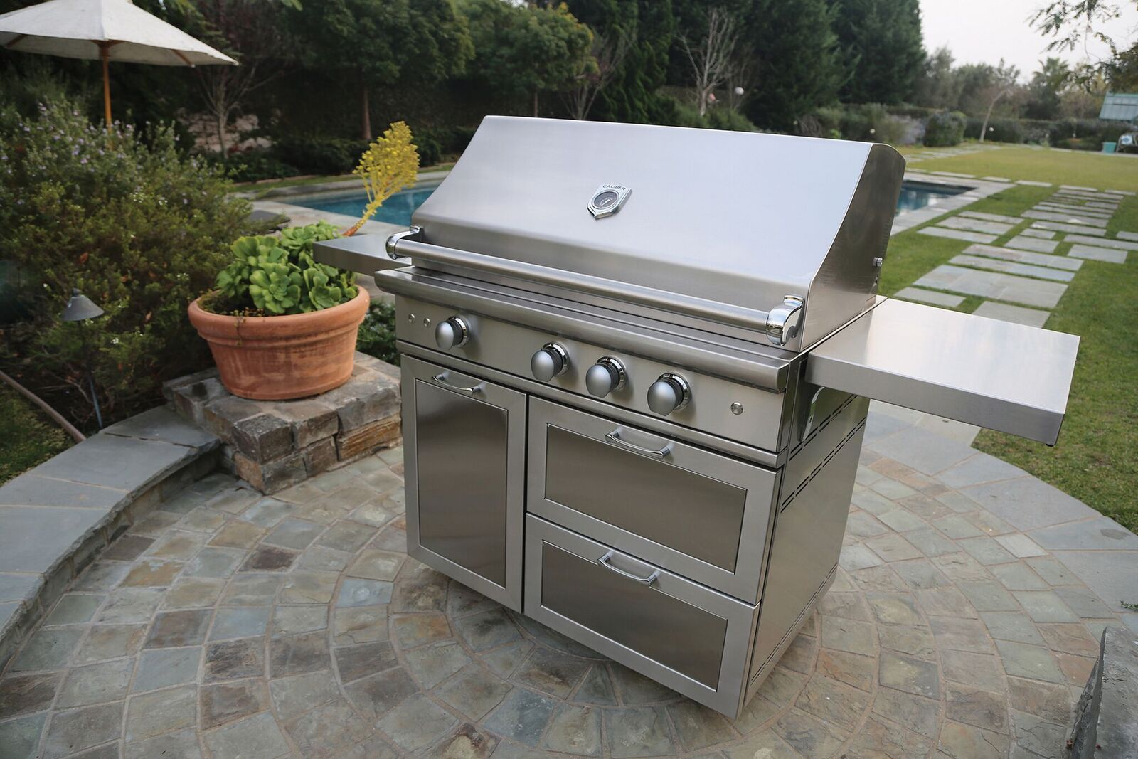Caliber designed the top of the line flagship Crossflame® Pro Grills to offer the performance that commercial chefs expect coupled with beauty in design that will surely be the focal point of your outdoor kitchen and entertaining area. The three burners plus rotisserie is a great feature. This grill head can build into a non-combustible outdoor island, or offered for installation onto one of our culinary center carts.