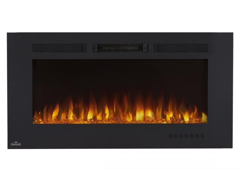 Enjoy an incredible 5,000 BTU’s of warmth that comfortably heats up to 400 sq. ft. from Napoleon’s Allure™ Phantom 42 Electric Fireplace. Enjoy the luxury of a fireplace without the need of specialized installation. Just hang, plug, and enjoy. The matte surround and mesh front provide an entirely unobstructed view of the glass ember bed and multicolored flames, without the glare from a glass front. A touch of a button alternates between a combination of flame colors to set the perfect mood. At only 5” deep, this fireplace won’t intrude on your living space, and can be fully recessed. Make a huge impact in any room with the Napoleon Allure™ Phantom 42 Electric Fireplace.