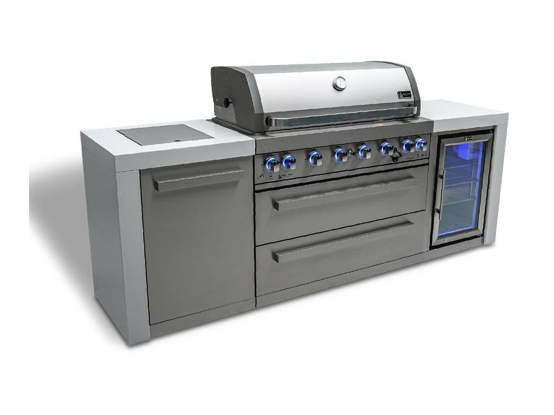 Whether you're a seasoned griller or just starting out, the Mont Alpi 6-burner Deluxe Island with Fridge Cabinet is the perfect addition to any backyard. And with its easy conversion to natural gas and delivered fully assembled, you can start cooking up a storm in no time.