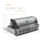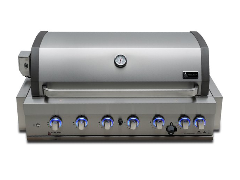 With six burners, a rear burner, and a heavy-duty rotisserie kit, it's the ultimate choice for rotisserie enthusiasts. The large L brackets and back bracket provide extra tolerance for most 6 burner cutouts. The grill comes standard with blue LED knobs that turn red when the grill is on, plus two bright internal lights for precision cooking in any lighting condition.