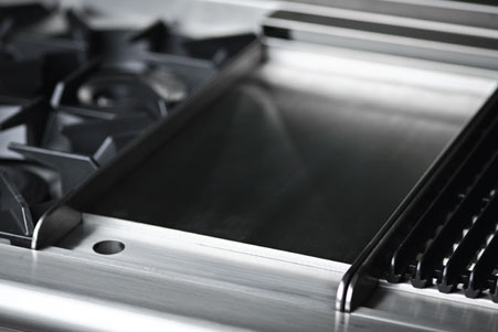 Our 3/8″ thick thermostatically controlled stainless steel griddle plate gives precise control over the griddle area, won’t rust, and doesn’t pre-conditioning. 12″ – 18,000 BTUs/hr. 24″ – 24,000 BTUS/hr.