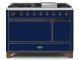 48" ILVE Majestic II Dual Fuel Natural Gas Freestanding Range in Blue with Bronze Trim - UM12FDQNS3/MBB NG