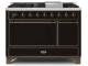 48" ILVE Majestic II Dual Fuel Natural Gas Freestanding Range in Glossy Black with Bronze Trim - UM12FDQNS3/BKB NG