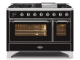 48" ILVE Majestic II Dual Fuel Range in Glossy Black with Chrome Trim - UM12FDNS3BKC-NG