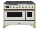 48" ILVE Majestic II Dual Fuel Range in White with Brass Trim - UM12FDNS3WHG-NG