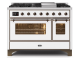 48" ILVE Majestic II Dual Fuel Range in White with Bronze Trim - UM12FDNS3WHB-NG