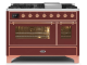48" ILVE Majestic II Dual Fuel Range with Copper Trim in Burgundy - UM12FDNS3BUP-LP