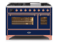 48" ILVE Majestic II Dual Fuel Range with Copper Trim in Blue - UM12FDNS3MBP-NG