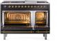 48" ILVE Nostalgie II Dual Fuel Liquid Propane Freestanding Range in Glossy Black with Brass Trim - UP48FNMP/BKG LP