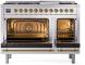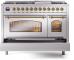 48" ILVE Nostalgie II Dual Fuel Natural Gas Freestanding Range in Stainless Steel with Brass Trim - UP48FNMP/SSG NG