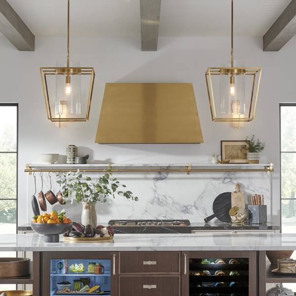 Handcrafted from stainless steel then PVD coated brass, this made-to-order accompaniment to the Monogram 48" insert creates an aesthetically pleasing centerpiece for the kitchen