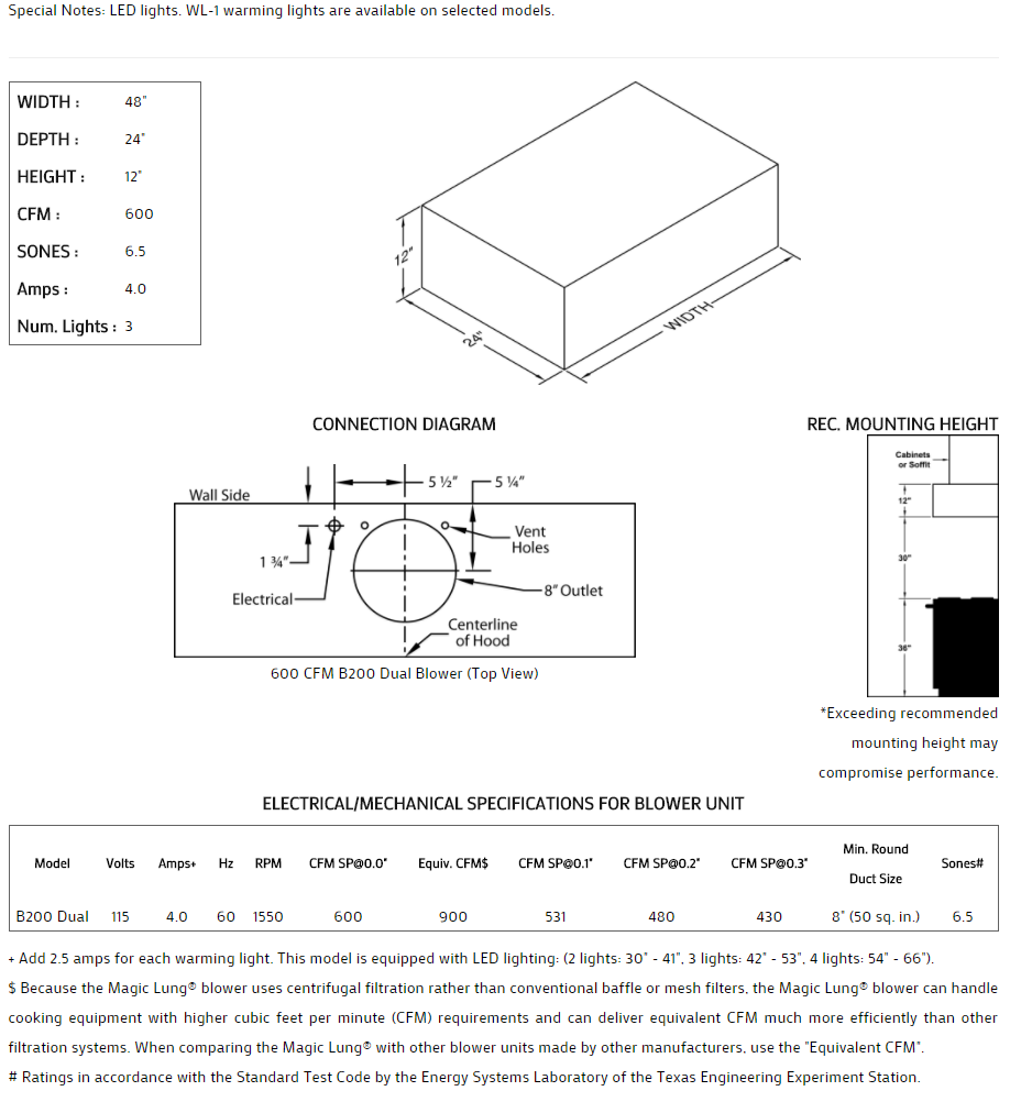 Stand-alone hood can have optional clipped or rounded corners. Add special offsets to create a lip. Optional rectangular, square or round duct covers are smart additions. Click on the models for a list of our base model numbers for standard sizes; simply select the model you need, and then specify the finish (painted, stainless steel, real brass, real copper, or hammered copper). Recommended mounting height is 30" above the cooking surface. All Vent-A-Hood products are suitable for use in damp locations (outdoor applications such as a covered patio) when installed in a GFCI protected branch circuit.