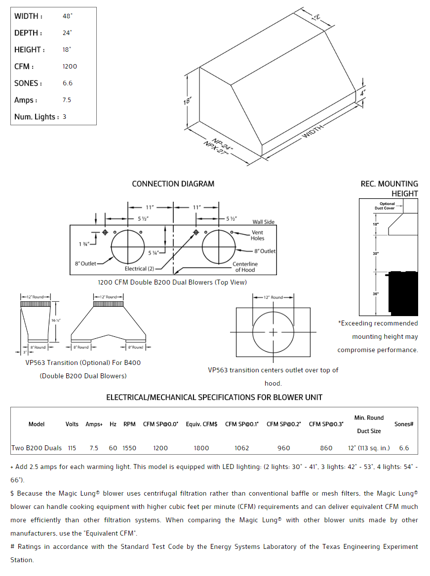 48" Vent-A-Hood Premier Magic Lung Professional Or Standard Wall Mounted Hood - NPH18448SS