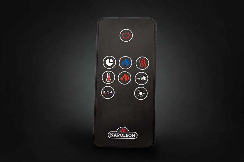 Remote with optimized performance and easy to read display easily controls the fireplace.